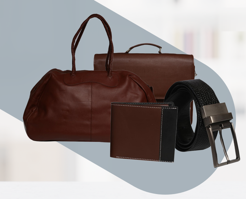 wallets, belts, document bags, portfolio bags, corporate souvenirs, and